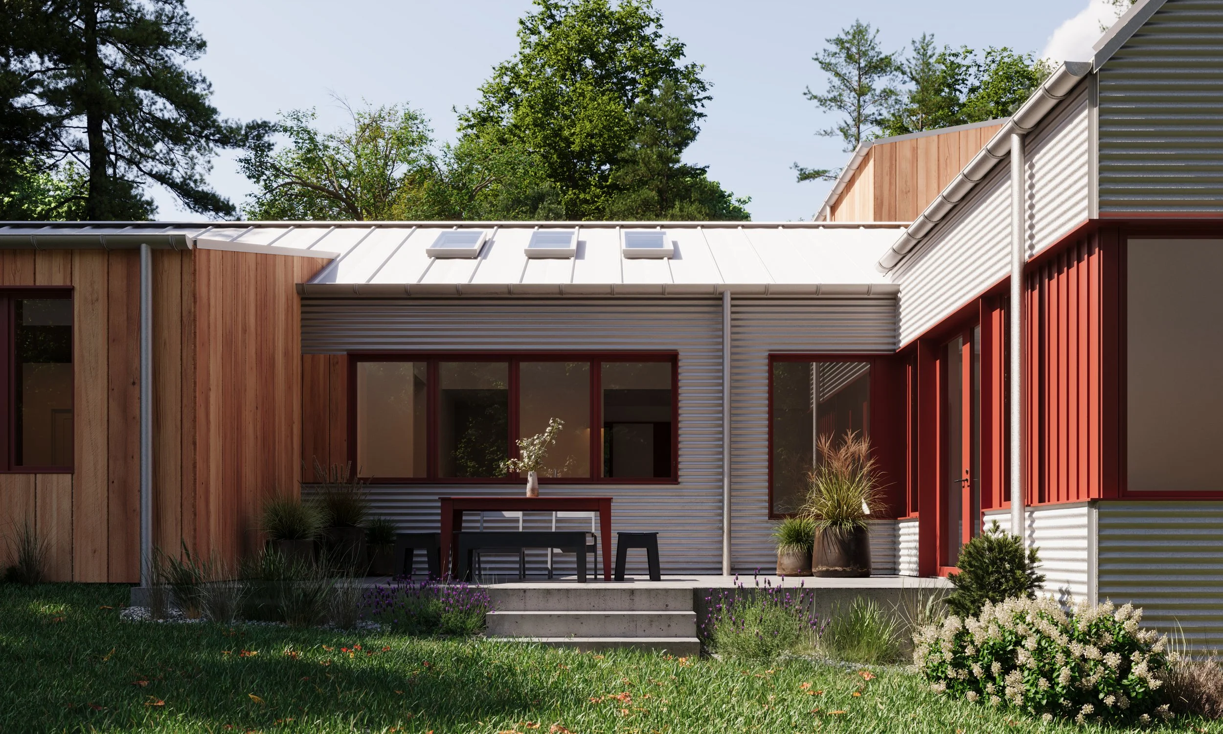 Built on the clients parcel already home to a tutoring center, the family home does double duty in providing expanded space for the learning while making space for quiet and serenity for family life. The home is designed to PHIUS 2024 Core Standards, but will not pursue certification.